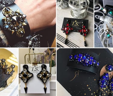 Mūsų asortimente unikalūs moterų ir vyrų rankų darbo papuošalai. Nuo minimalių, subtilių iki masyvių, išraiškingų. Gamyboje naudojame stiklo kristalus, sertifikuotus swarovski kristalus, natūralią bei dirbtinę odą, stiklo karoliukus ir naturalius akmenis. Priimame ir individualius užsakymus. Visus darbus atliekame kruopščiai su meile.